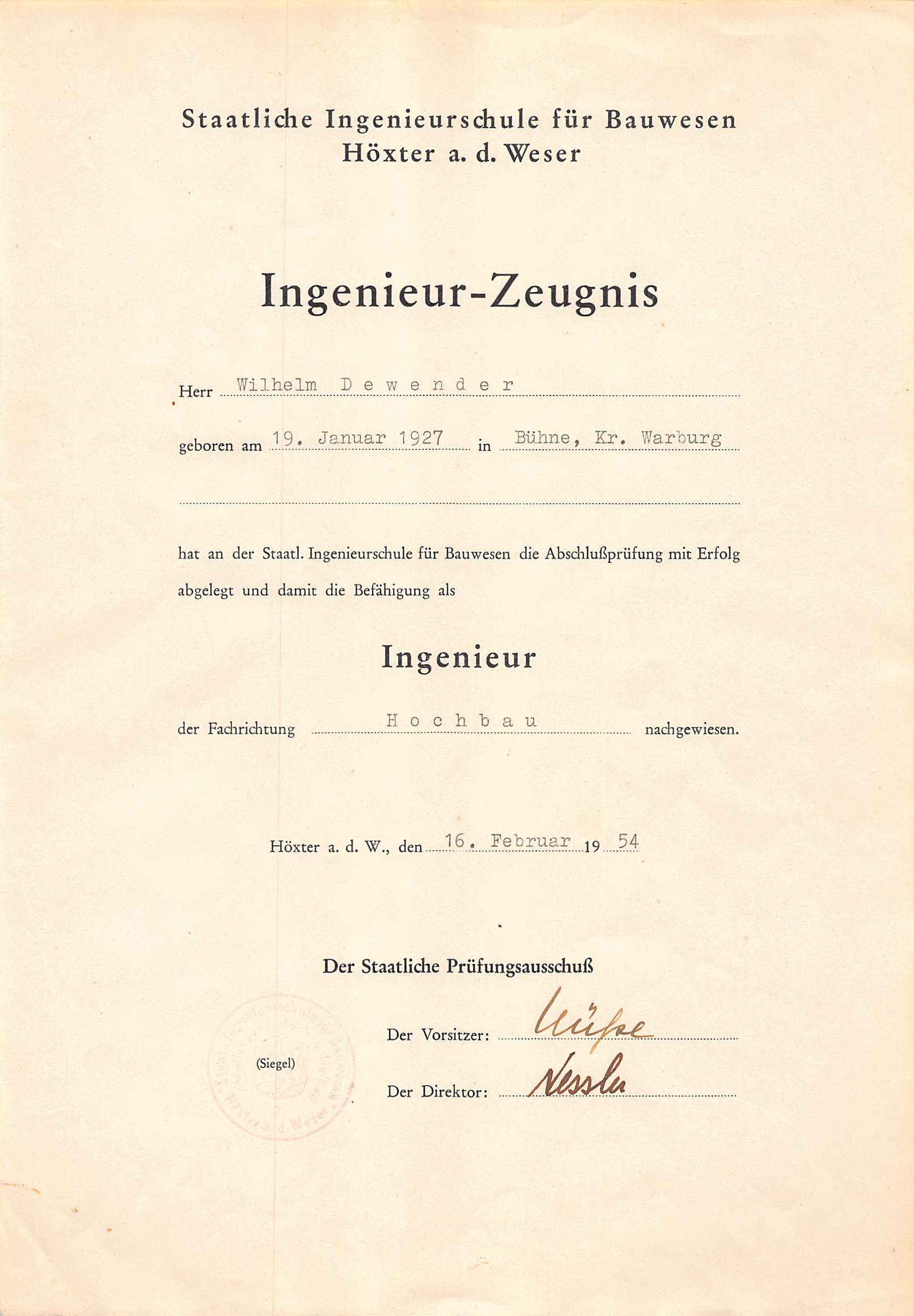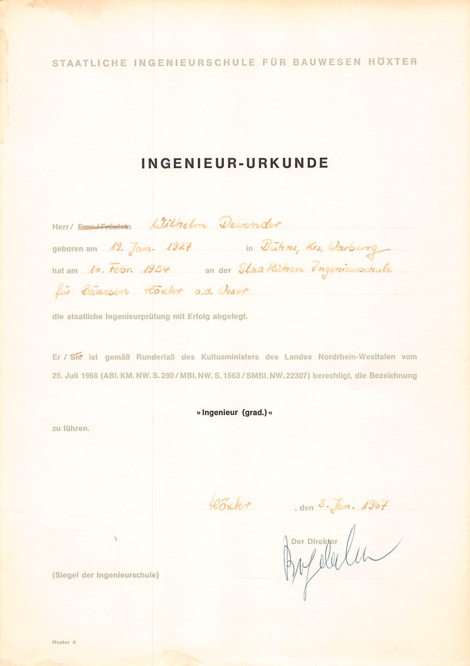 Staatliche Ingenieurschule für Bauwesen in Höxter; Abschluss: Ing. (grad.)