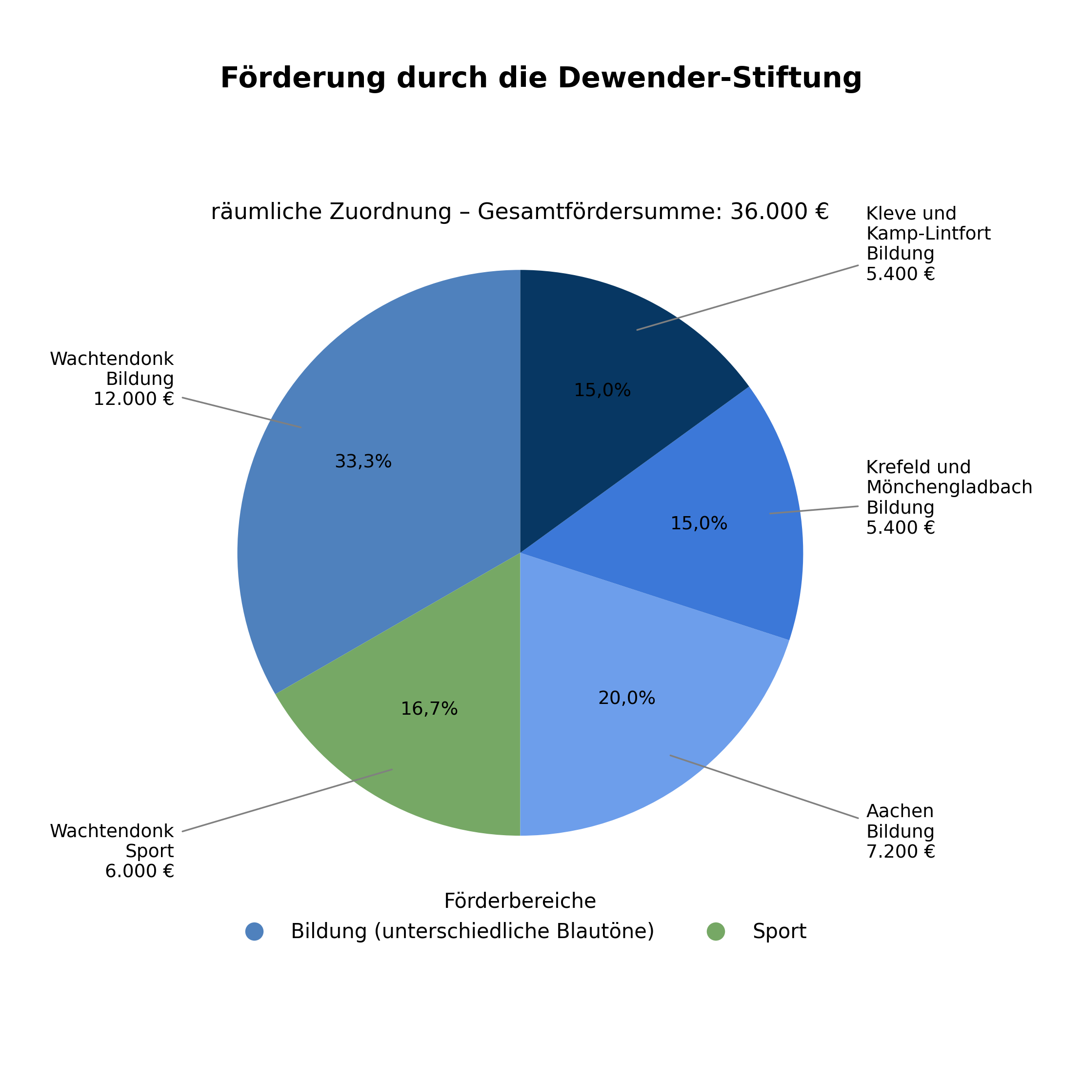 Mit einem Kapital von 1,35 Milionen Euro und einem jährlichen Fördervolumen von 36.000 EUR zählt die Dewender-Stiftung am linken Niederrhein zu den stärkeren Akteuren.